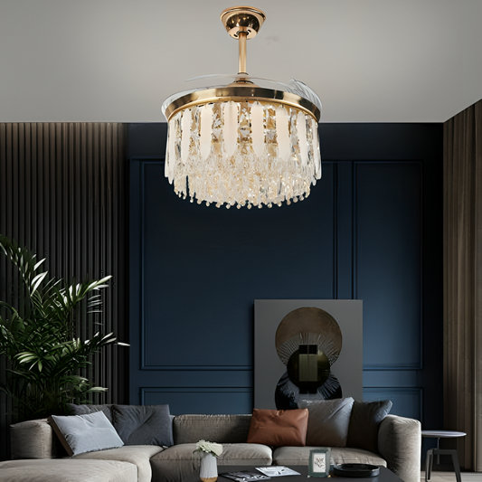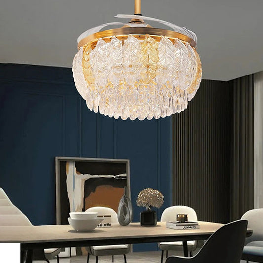 Crystal Leaf Retractable Ceiling Fan Chandelier Light with Remote Control