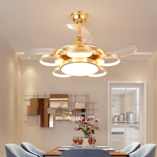 Gold Rings Ceiling Fan Chandelier with Remote Control